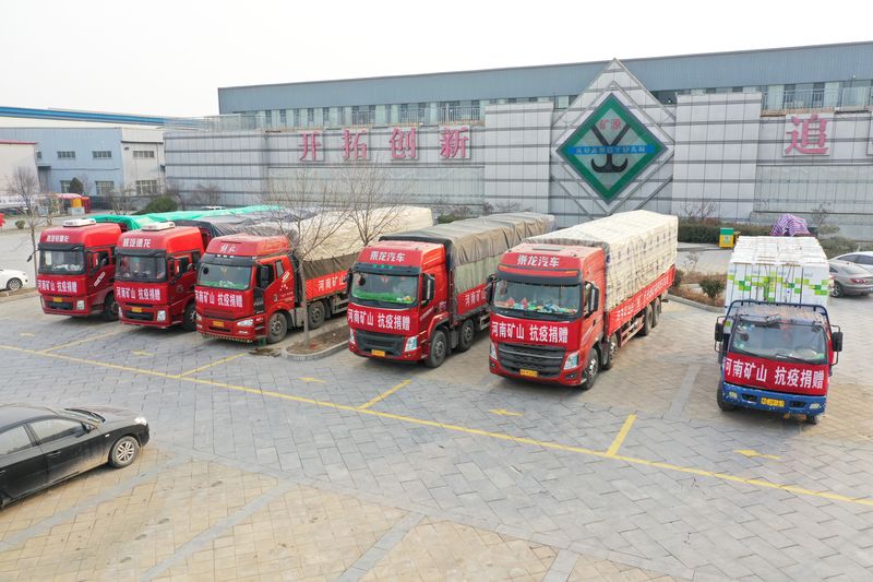 ▲2020年初,河南礦山捐款捐物700余萬元。滿載全體礦山人愛心的近百噸捐助物資,火速馳援疫區武漢,為緩解疫情貢獻礦山力量。